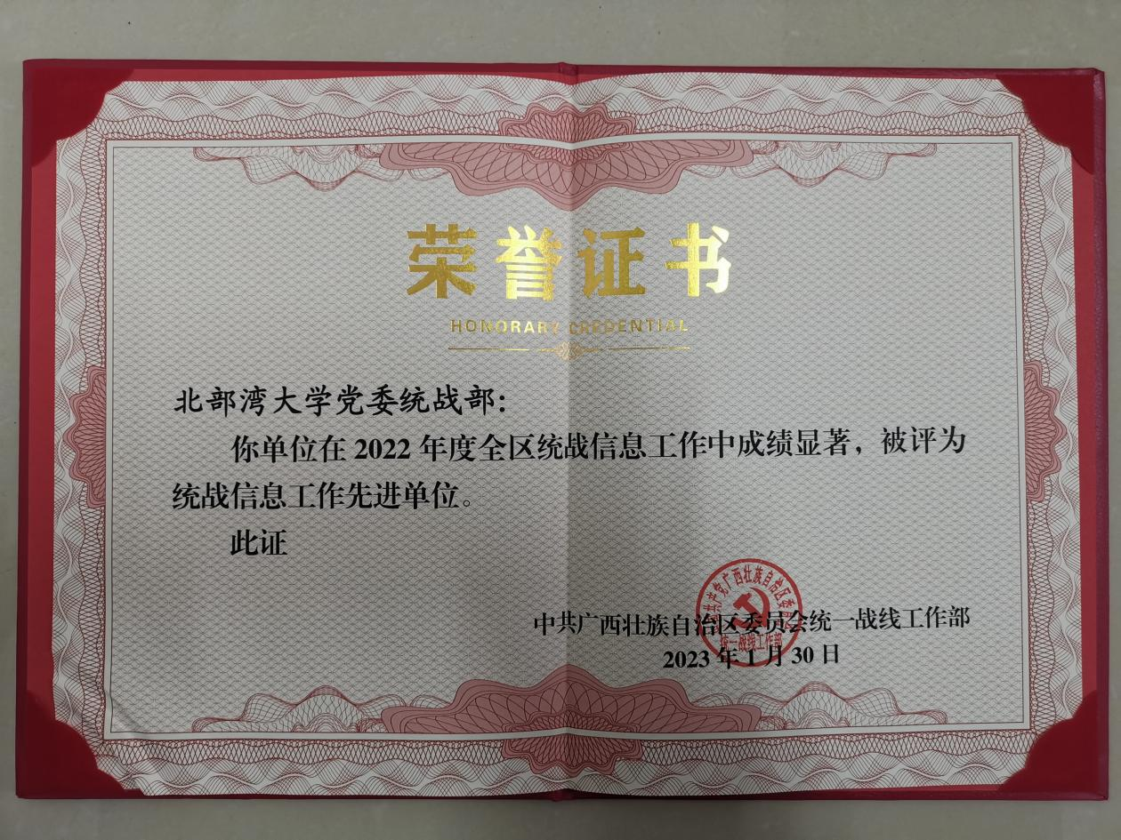 近日,全区统战部长会议在南宁召开。自治区党委书记、自治区人大常委会主任刘宁作批示。自治区党委常委、统战部部长王心富出席并讲话。大会还为获得全国、全区统战信息工作和统战理论政策研究、统战工作实践创新成果奖项的先进单位(个人)进行表彰。pp电子荣获2022年度全区统战信息工作先进单位。