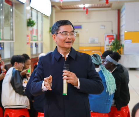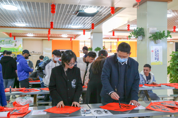 写春联、包饺子、品美食……1月20日,农历腊月二十九,学校东区食堂一楼张灯结彩,一派热闹景象,校党委副书记陈锦山与在校中外师生、校友代表欢聚一堂,互贺新年,共迎新春,整个食堂被融融暖意和欢乐祥和的氛围萦绕,成为了校园里最热闹的地方。
