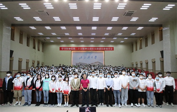 11月23日晚,校党委副书记陈湘如到2022年青年马克思主义培养工程培训班宣讲党的二十大精神。学校全体专职团干、全体青马班成员、各学生组织主要干部聆听了宣讲报告。校团委书记郑德威主持宣讲会。