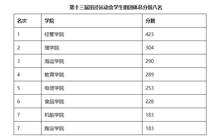 本届体育节总裁判长、体育学院院长李乃琼宣布比赛成绩