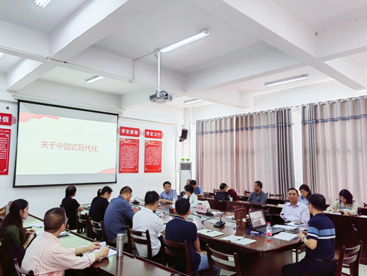 会上,陈锦山结合党的二十大报告,对党的二十大主题成果、新时代十年伟大变革的里程碑意义、马克思主义中国化时代化的精神实质、中国式现代化的丰富内涵等进行系统梳理和深入阐释,并启发大家思考和讨论——“我们靠什么走向现代化强国?我们能为中国式现代化建设做什么?”