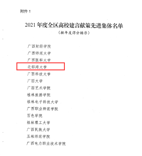 根据《自治区党委统战部自治区党委教育工委关于2021年度高校建言献策工作先进典型的通报》精神,pp电子荣获2021年度全区高校建言献策先进集体,副校长黄鹄荣获2021年全区高校建言献策先进个人称号。