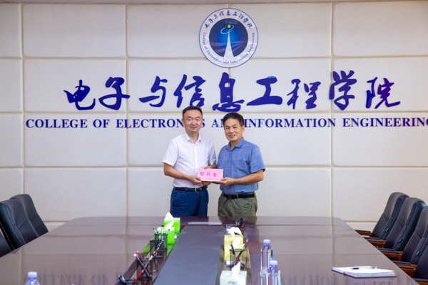 校党委副书记、校长苗剑(左)慰问电信学院教师党员代表