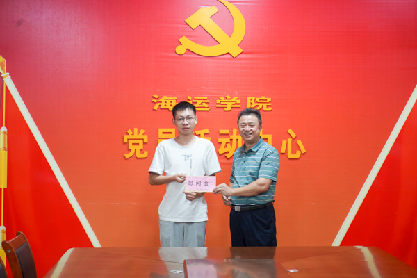 校党委常委、副校长闫松银(右)慰问海运学院学生党员代表
