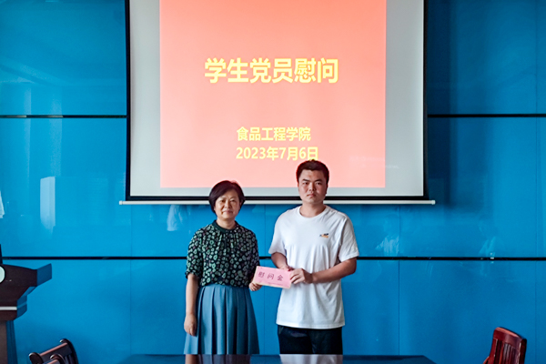 校党委常委、副校长陈丹(左)慰问食品工程学院学生党员代表