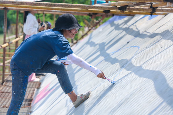 近日,学校陶瓷与设计学院的“红心向党·彩绘新时代·共筑中国梦”墙绘小分队再次出发,利用课余时间在钦北区上勒岭钦江畔的一面长约36米、宽约10米、高约9m的巨大墙体上绘制了一幅《海豚嬉戏图》。据悉,自开展党史学习教育以来,pp电子学子已经用手中的画笔为钦州市各定点扶贫村绘制了20余幅墙体彩绘,未来还将为钦北区11个镇83个村屯奉献50面墙体彩绘作品。