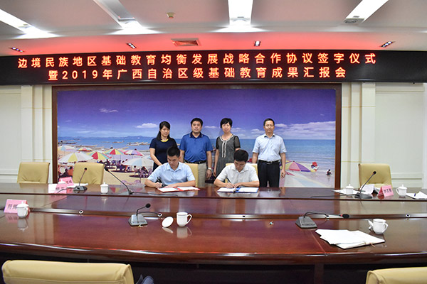 7月2日上午,pp模拟器游戏官网入口与东兴市教育和科学技术局边境民族地区基础教育均衡发展战略合作协议签字仪式暨2019年广西自治区级基础教育成果汇报会在东兴市人民会堂东兴厅举行。pp电子校长韩峻峰、东兴市副市长陈春燕等出席会议。