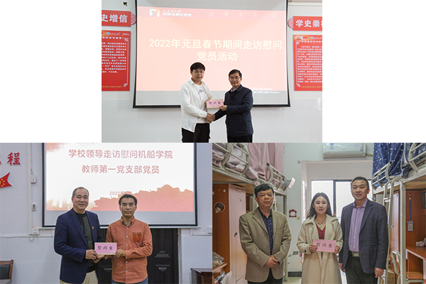 唐高华副校长慰问机船学院教师党支部党员(下左)、陈磊副校长慰问人文学院学生党支部党员(下右)