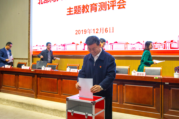 随后,全体与会代表填写主题教育测评表并逐一投票。