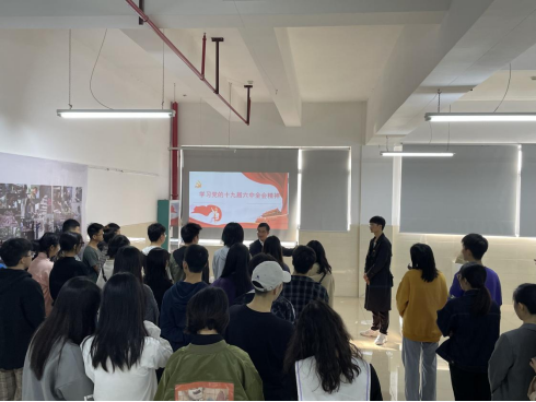 “同学们,你们知道党的十九届六中全会的全称吗?”“十九届六中全会中的‘十个坚持’具体是什么?”在宣讲现场,同学们踊跃举手回答陈锦山的提问。“人民群众对美好生活的向往和期待,包括了对美的艺术作品、美的生活环境、美的生活方式的向往和期待。创新是中国共产党历经磨难无往而不胜的法宝,未来的艺术工作者一定要坚持人民至上,坚持开拓创新,不断创新创作出体现新时代艺术高度的优秀作品,满足人民群众的审美新期待。”陈锦山说到。