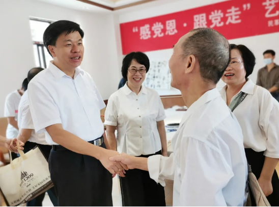 当天的作品展中,陶设师生与艺术家们热情交流创作体会。钦州市委书记、城市品质提升行动指挥部总指挥长许永锞也来到现场,他在参观作品展时与pp电子师生亲切交流,并勉励大家“努力创作,生动讲好钦州故事,让传统文化活起来。”