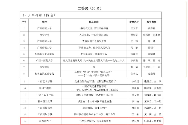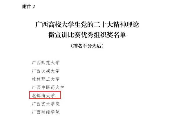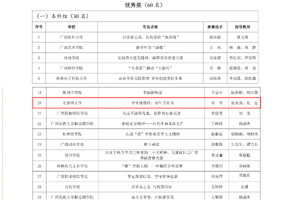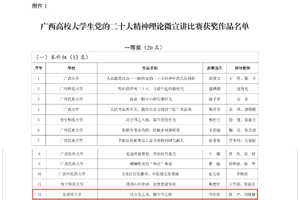 近日,由自治区党委教育工委、自治区教育厅主办,广西中医药大学承办的广西高校大学生党的二十大精神理论微宣讲比赛在南宁落下帷幕。本次比赛共收到全区高校报送的参赛作品313部。经专家综合评审,共评选出获奖作品150部。