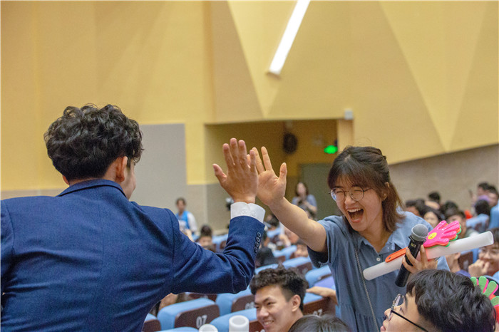 现场亮点之一是穿插进行了党史知识问答互动。“最先在中国提出“中国共产党”这个名称的是谁?”“哪个历史事件标志着中国新民主主义革命开端?”湾大学子们对党史的熟悉程度让观众席迅速呈现出踊跃抢答之势,问答PK格外热闹,一度出现的高潮让人感叹台上“歌圩百年情”,台下“星火正风华”。