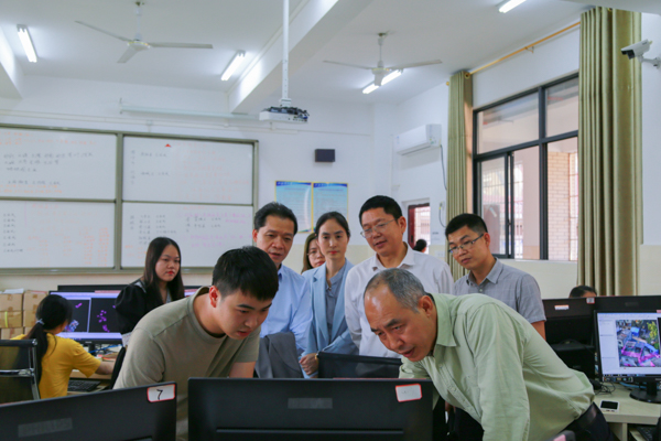 座谈会后,韦鹏涯一行到pp电子食品工程学院和资源与环境学院实地考察调研。(卢子旺 黄敏钊 摄)