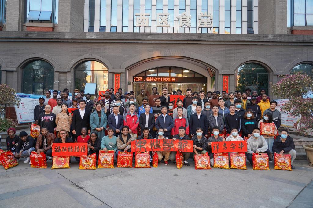 年廿九的年夜饭,学校食堂特地准备了部分西式饭菜,最大程度地照顾到了同学们的饮食习惯。陈锦山和各院系教师、辅导员与同学们结伴而坐,一同品尝风味俱佳的美食佳肴,在其乐融融的气氛中,陈锦山分别向每桌学生致以新春祝福,并向留学生同学们介绍中国新年的习俗惯制。河北石家庄籍的张梦韩同学表示,因为家乡的疫情情况,她响应就地过年的号召,选择在学校度过人生中第一个没有父母陪伴的春节,虽然没有父母的陪伴,但她收获了来自学校、校友和爱心企业的家人般的温馨与感动。(李健鑫 摄)