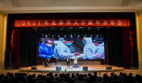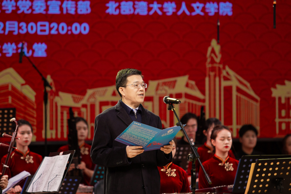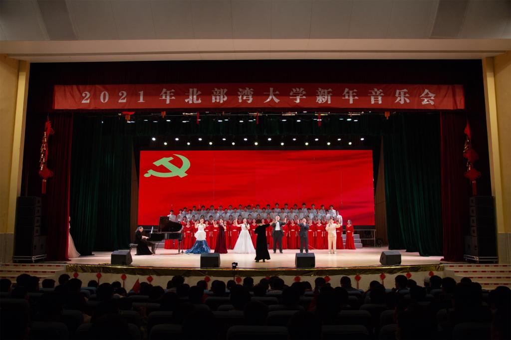 12月30日晚,pp电子“同赴百年约定 共圆复兴梦想”2021年新年音乐会在礼堂隆重举行。钦州市委常委、宣传部部长郑娟,学校党委书记韩峻峰,校长林基明,党委副书记陈锦山,副校长黄鹄、唐高华、陈磊,纪委书记覃宇环,湾大校友会副会长、广西华竹生物科技有限公司总经理黄本扬,各二级学院师生代表以及社会各界人士共同欣赏了音乐会。