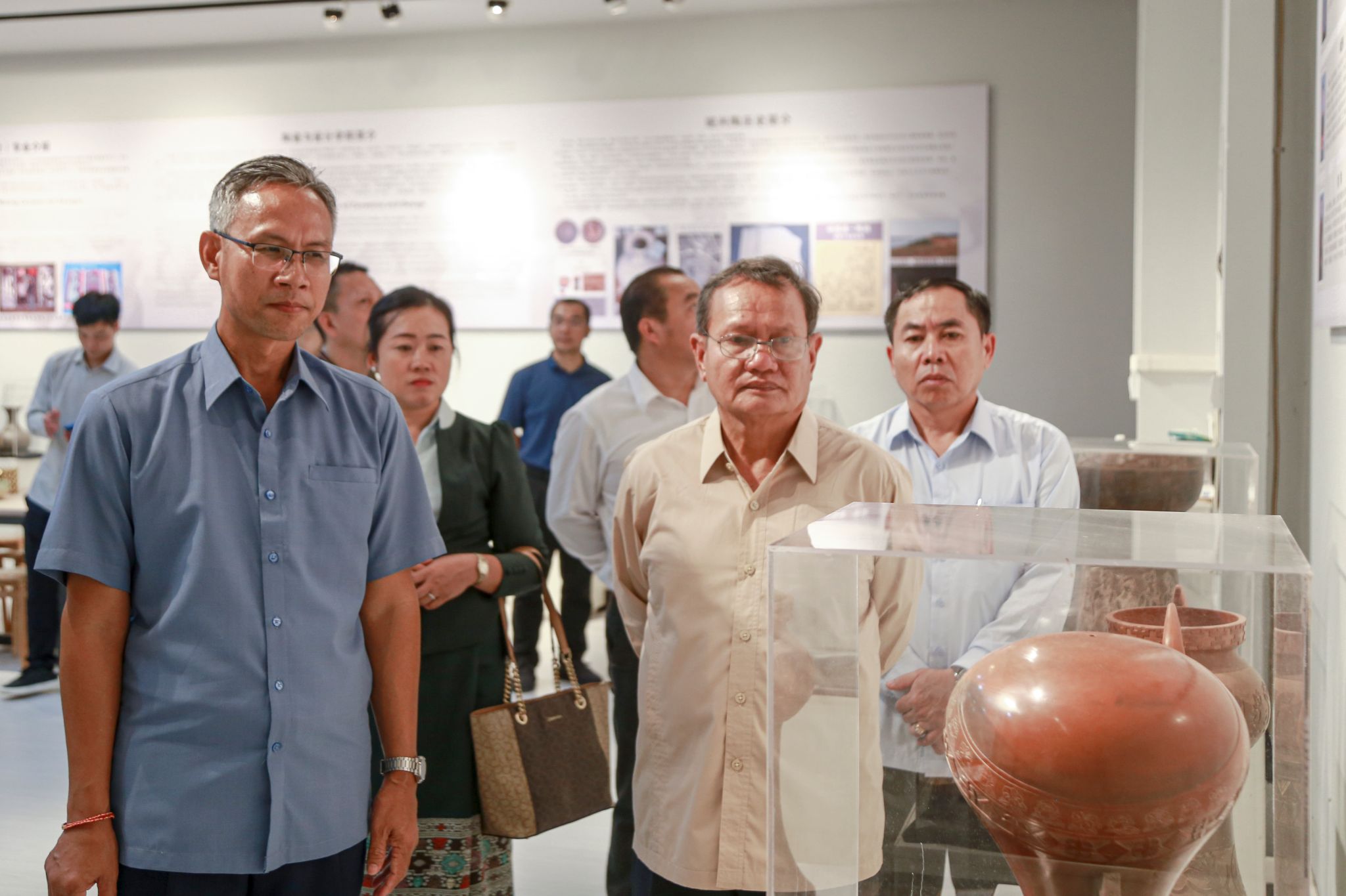 会前,坎佩·宋沃拉吉一行参加了在校老挝学生的见面会,并走访参观了学校海洋文化博物馆、坭兴陶展厅与留学生宿舍。