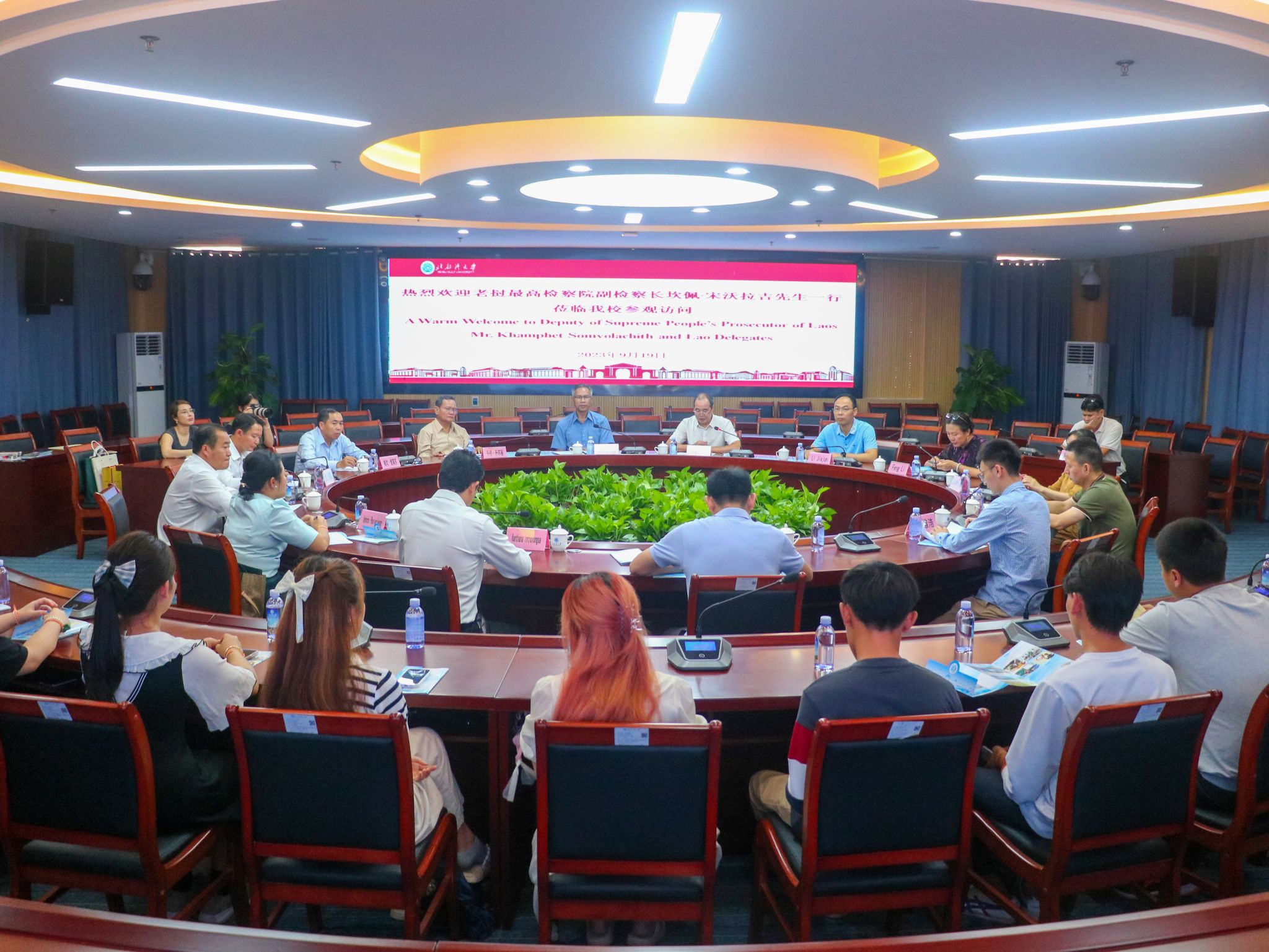 9月19日,老挝最高人民检察院副检察长坎佩·宋沃拉吉一行8人来pp电子进行参观访问。座谈会在国际交流中心222会议室举行。学校党委副书记唐高华出席会议。学校国际交流处处长、国际教育与外国语学院院长冯丽主持座谈。