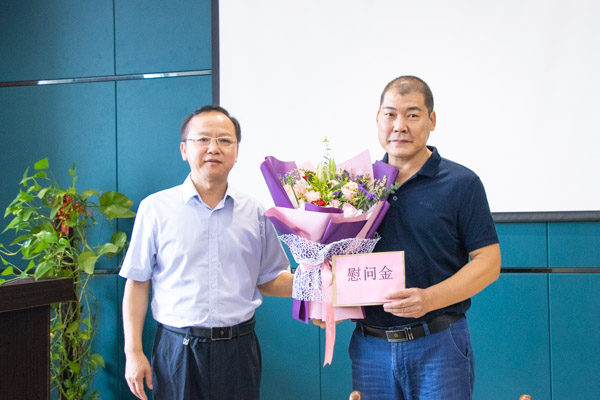 校长韩峻峰(中)慰问机械与船舶海洋工程学院夏义江老师(右二)