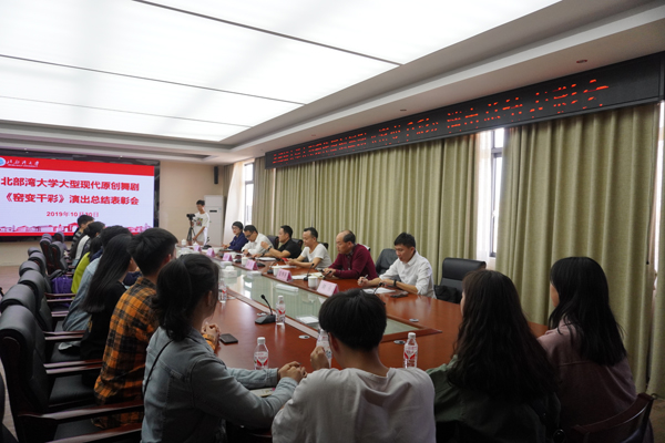 会上,赴马来西亚参加《窑变千彩》首场公演的学生畅谈了自己的体会与收获。他们对学校的大力支持与彭武老师的精心培育表达了深深谢意。舞剧排练助理、人文学院教师刘喜表示,在舞剧的创编与排演中,其应用型人才的培养理念与教学模式都得到了深度启发;人文学院院长莫华善感谢老师与同学们的共同努力创造了湾大历史上的首次国际公演,他希望“窑变精神”能够一代一代的传承下去。编导彭武讲述了舞剧排演几年来沉淀的师生情谊,他感谢钦州与湾大为他的创作提供了自由而肥沃的土壤。他表示,将继续与湾大师生一道把舞剧做精做大,走得更远。