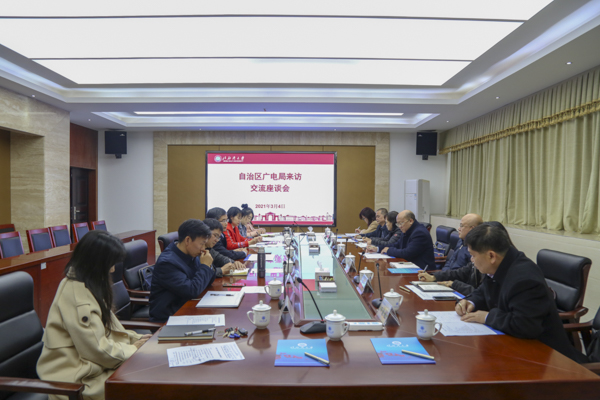 3月4日下午,自治区广电局党组成员、副组长李承武一行到pp电子调研。交流座谈会在办公楼327会议室召开,学校党委副书记陈锦山出席,校办、教务处、人事处、招就处、财务处、人文学院主要负责人参会。