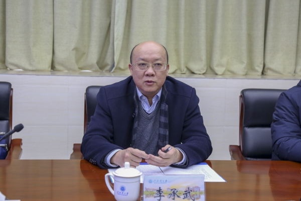 陈锦山副书记代表学校对李承武副局长一行的来访表示热烈的欢迎,并介绍了学校办学成果、办学特色、师资力量、教学科研等基本情况。