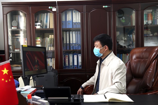 学校党委书记赵君与全校师生一同在云课堂全程听讲。赵君书记认为,在全国上下坚决打赢疫情防控人民战争、总体战、阻击战的重要时刻,“全国大学生同上一堂疫情防控思政大课”就像一场及时的春雨,将高校思想政治理论课教学优势转化为支持防疫斗争的强大力量,这是深入贯彻落实党中央、国务院关于新时代学校思想政治理论课改革创新决策部署的生动体现,充分彰显了党统揽全局、协调各方的中国特色社会主义制度的显著优势,深刻体现了“以人民为中心”的理念情怀,高度诠释了众志成城、共克时艰的中国速度、中国精神、中国力量。