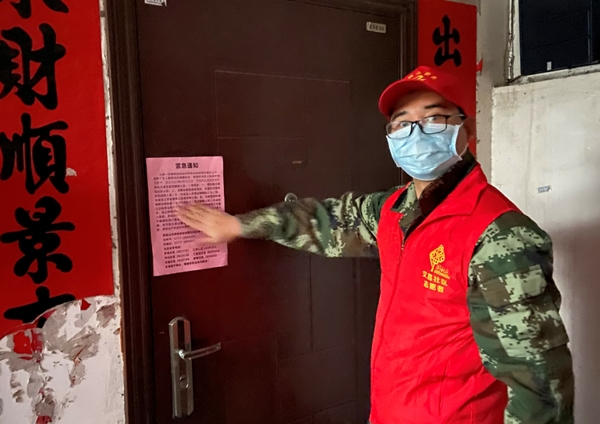 对于无人在家的住房,pp电子党员干部通过电话及时了解情况,并把紧急通知要求贴在门口