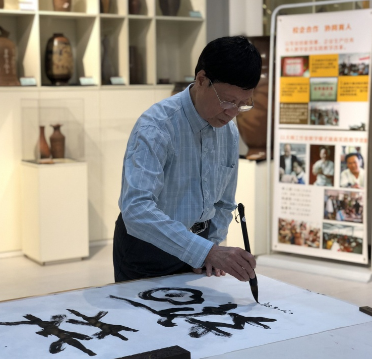 王兆儒认为,钦州坭兴陶具有古朴雅致的独特审美意蕴,希望学校在人才培养中,将书法、雕刻、绘画等中华传统文化及技法应用到坭兴陶设计与技艺中,进一步融合创新,丰富坭兴陶的文化内涵。