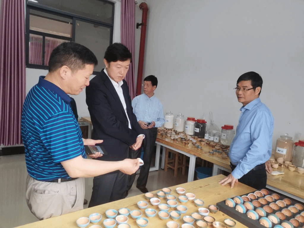 会前,卢峰副市长一行参观了学校坭兴陶展厅、大师工作室、拉胚工作室和陶瓷艺术设计实验室,调研坭兴陶工艺实验实训教学、坭兴陶科技研发情况。陈锦山副书记、陶瓷与设计学院党委书记古雅峰、院长周晓峰陪同调研。