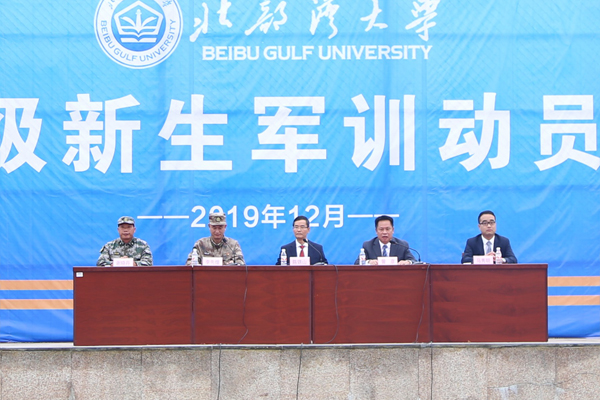 12月14日上午,pp电子2019级新生军训动员大会在西区田径场举行。学校党委副书记陈锦山,钦州市钦南区武装部部长李先煌,校党委常委、宣传部部长马秀明、广西绿邦国防教育训练基地副主任谢晓丹出席本次动员会。相关部门和各二级学院的主要负责人、班主任、辅导员,承训部队教官和2019级的同学参加。大会由学校副校长曾彦主持。