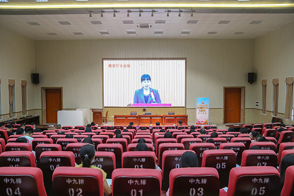 师生代表认真观看视频报告会