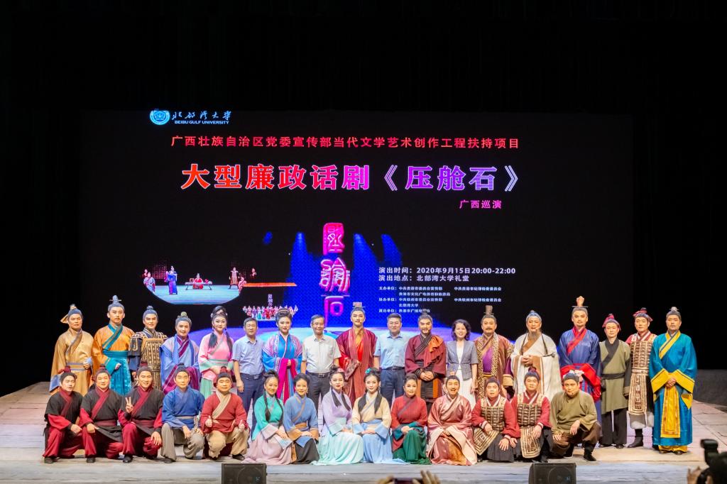 9月15日晚,pp模拟器游戏官网入口礼堂人声鼎沸、座无虚席。由pp电子校友、2009级音乐学(舞台主持与表演)专业毕业生刘奕疆担纲主演的廉政题材大型话剧《压舱石》隆重上演。学校党委副书记陈锦山,校纪委书记覃宇环与党员师生代表及来自钦州市的观众一同观看了演出。