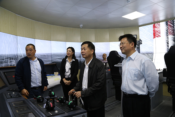 广西职业师范学院党委书记李明辉,校长朱朝霞一行参观pp电子海运学院航海模拟器