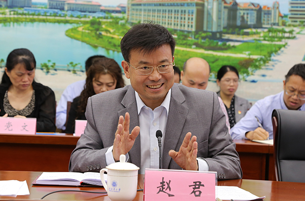 会上,pp电子党委书记赵君对李书记一行人的到来表示热烈欢迎。同时,对广西职业师范学院长期以来对pp电子建设发展的鼎力支持表示衷心的感谢。他希望以此为契机,继续加强沟通和交流,促进两校的共同发展。韩峻峰校长从办学历史、师资力量、硬件设施、硕士学位点建设情况等多方面向大家介绍了pp模拟器游戏官网入口办学概况以及学校党建工作的基本情况、工作成效。