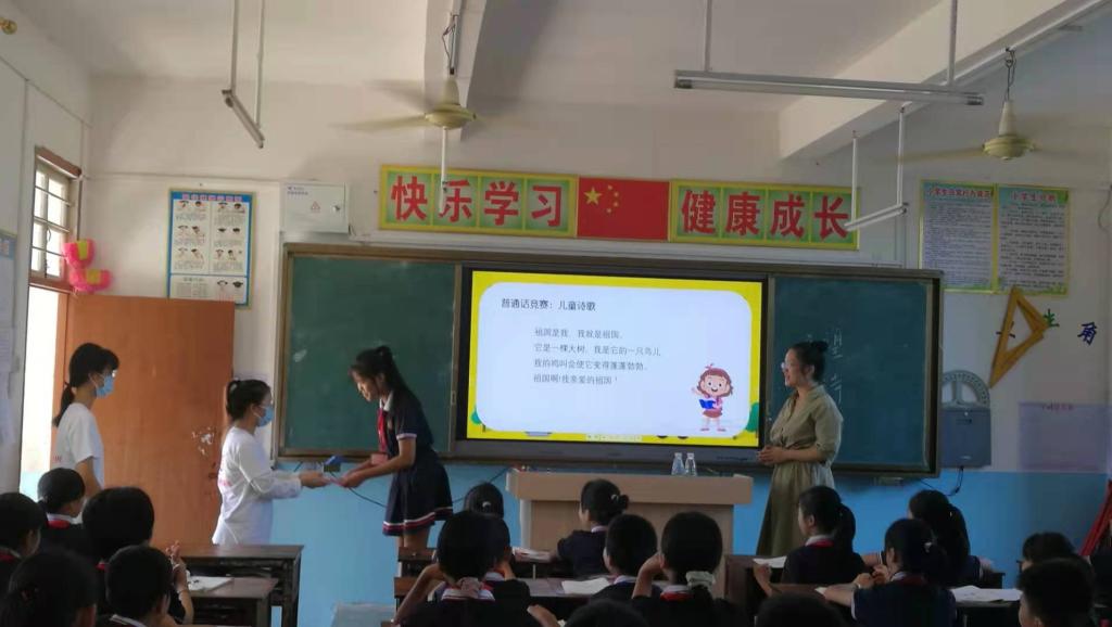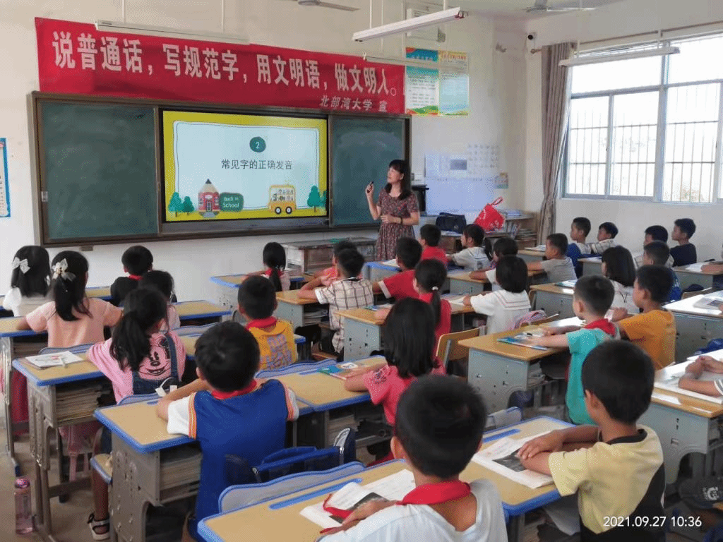 当天,在驻村第一书记的陪同下,pp电子推普小组分别前往周北村、英梅村、长新村、富门村、分新村、良荔村等6个小学开展“送教下乡“推普活动。测试员们为6所村小学的教师进行了一对一普通话辅导。测试员还携手普通话协会的同学们走进小学课堂,为孩子们上了一堂生动的普通话课。崭新的理念、精湛的教学艺术有效地把普通话的基本知识、常见字的正确发音、为什么要推广普通话、如何讲好普通话等知识进行了宣传推广,深受当地师生的好评。