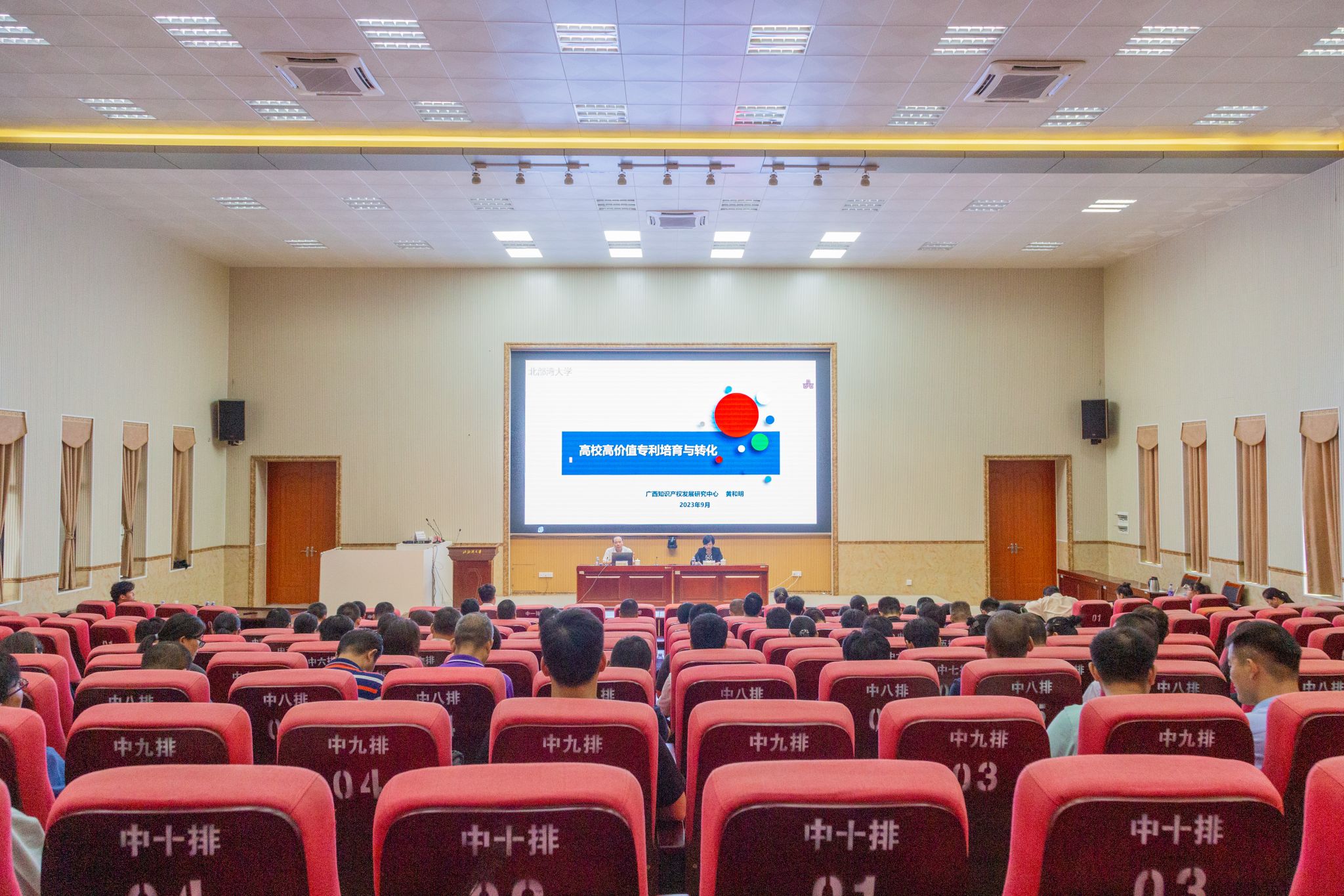 9月26日,学校在12号教学楼204报告厅召开知识产权专题报告会,特邀广西知识产权发展研究中心主任黄和明进行授课。学校党委常委、副校长陈丹主持。