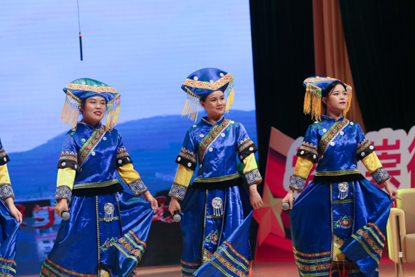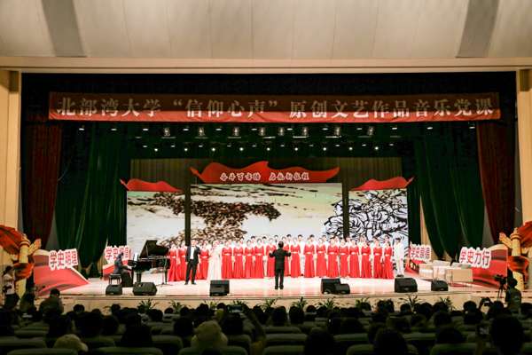 在歌曲展演部分,《一个老兵的思念》《仰望牛圩坡》《红马褂》《好梦如花》《百年之本》《我把爱渐渐给予你》《广西人民永远跟党走》《党的领导国富强》这八首湾大原创音乐作品中,有铁血柔情的革命先辈、有小董起义的英烈事迹、有湾大驻村第一书记、有信心满满的广西各族群众、有朝气深情的当代青年,每一首原创歌曲都承载着一段红色记忆,每一个音符都诉说着革命理想高于天的豪情壮志。