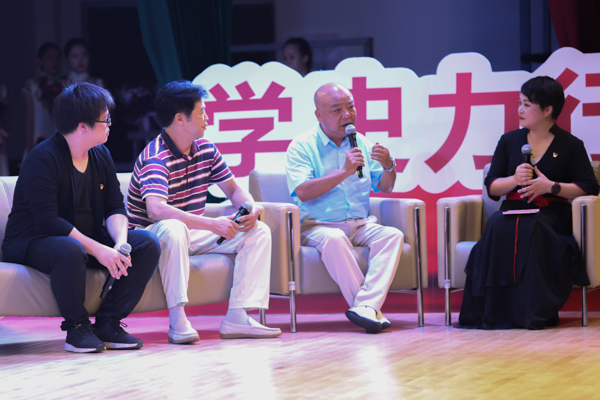 在“党员心声大家谈”主题访谈环节,歌曲的原创者畅谈创作的灵感和感悟。“九零后对创作红色歌曲,情感会有这么充沛吗?”“零零后的学子如何唱好七十多年前的红色故事?”“红歌只有特定年代才有创作和传唱的价值吗?”一个个具有现实意义的话题引发了现场观众的思考。其中,《党的领导国富强》的原创作者人文学院党委书记郭怀辉说道:“红歌催生人们的精神力量,让我们在轻松愉快的过程中接受红色精神的洗礼。在当下物质丰富的和平年代,要让这些支撑我们民族气节和风骨的革命精神不断地增强。”他的回答获得了全场热烈的掌声。