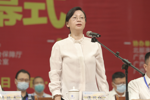 自治区总工会党组书记、常务副主席侯线红宣布大赛开幕
