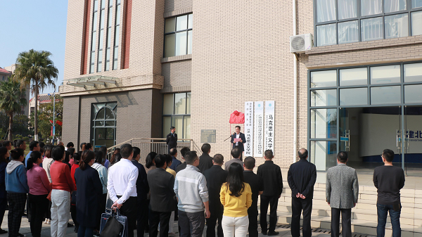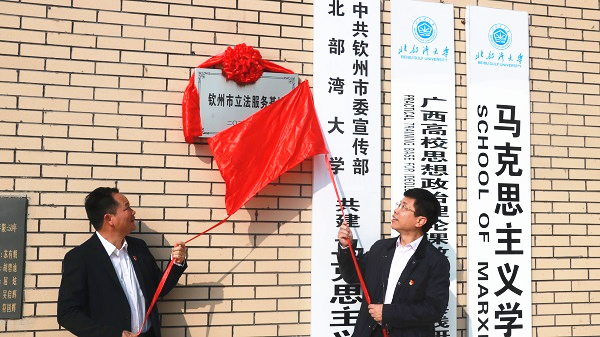 揭牌仪式在pp模拟器游戏官网入口海洋馆、马克思主义学院一楼正门举行。覃天卫、韩峻峰一同为钦州市立法研究评估与咨询服务基地揭牌。钦州市人大常委会相关职能部门领导干部、学校相关部门、马克思主义学院负责人及学院全体教师共同见证了这一激动人心的时刻。