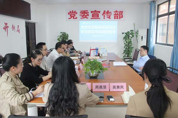 3月10日下午,学校党委副书记陈湘如到党委宣传部指导调研,并在办公楼244会议室座谈。学校党委常委、宣传部部长马秀明主持座谈会。