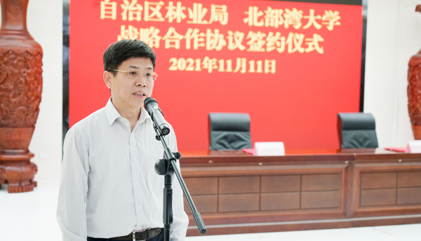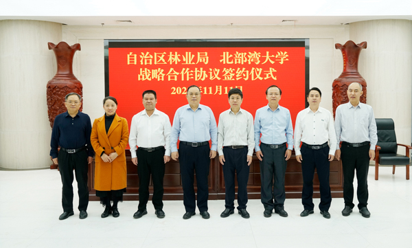 自治区林业局各处室相关负责人,学校党校办、科技处、资源与环境学院、海洋学院等相关负责人参加签约仪式。(自治区林业局信息宣传中心杨海健 摄)