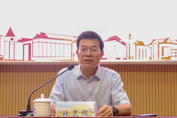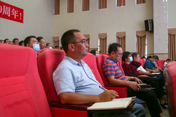 8月31日上午,百色干部学院常务副院长唐秀玲教授以“奋进百年路 开启新征程”为题,在12号教学楼204报告厅,为pp模拟器游戏官网入口暑期中层领导干部培训班学员们解读了习近平总书记“七一”重要讲话精神和视察广西重要讲话精神。学校党委副书记、校长林基明主持讲座。