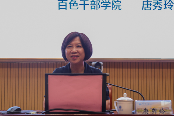 讲座中,唐秀玲教授用“纲领性文献”“政治宣言”“行动指南”三个关键词总结了习近平总书记“七一”重要讲话精神的重大意义;她回顾百年建党历程,结合重大事件,分析了“中国共产党为什么行”;她讲述习近平总书记八桂情缘,重点解读了习近平总书记今年视察广西的重要讲话精神。她强调,从“三大定位”新使命到“四个突出特点”是习近平总书记对广西区情的深刻和精准的把握,也是新时代广西发展的根本遵循。她认为,牢记嘱托,感恩奋进,加快“建设新时代中国特色社会主义壮美广西”,就是要在推动边疆民族地区高质量发展上闯出新路子;在服务和融入新发展格局上展现新作为;在推动绿色发展上迈出新步伐;在巩固和发展民族团结、社会稳定、边疆安定上彰显新担当。