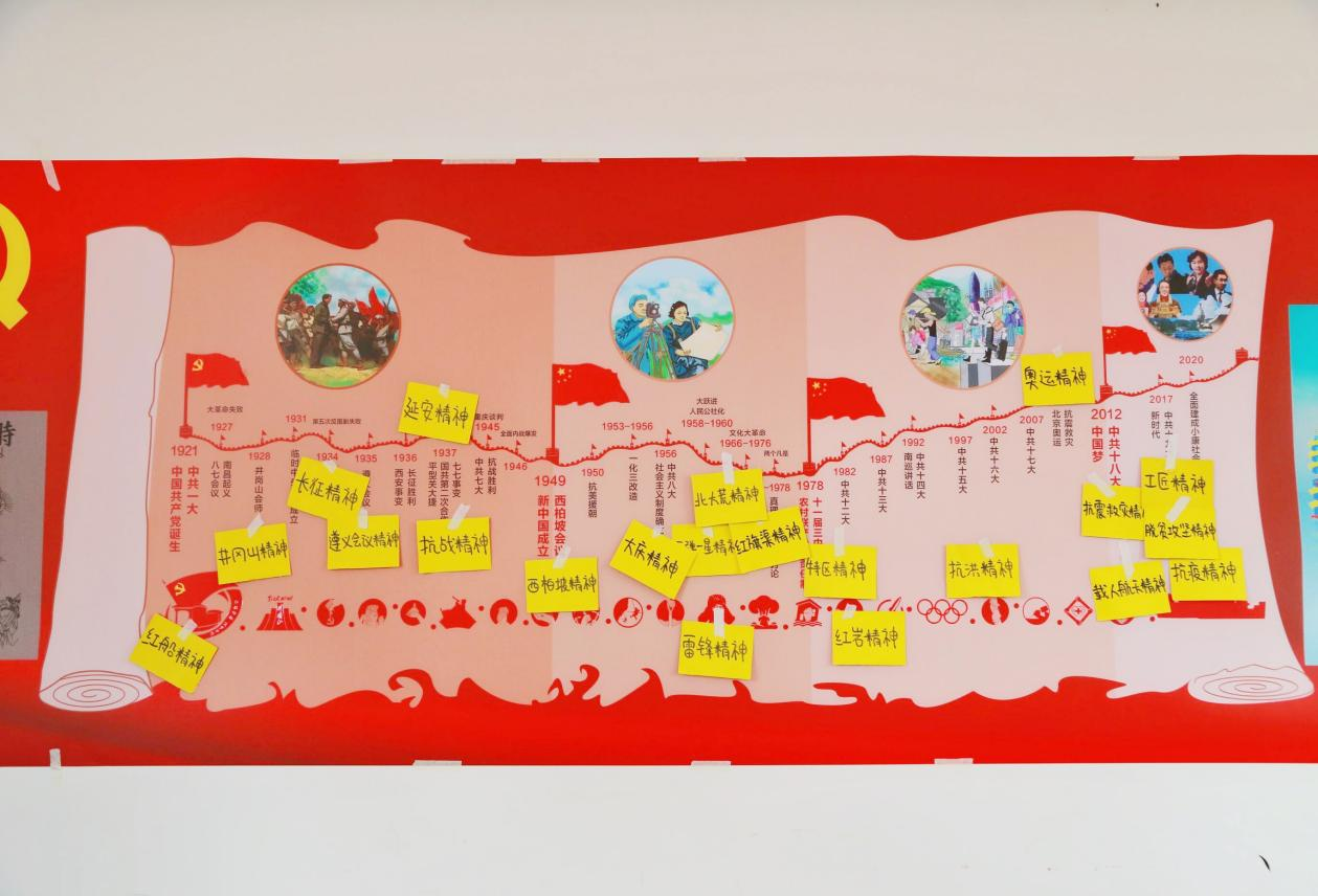 每到一个党支部,在摆放环节,成员们用“列强瓜分卡”再现历史,拼手速、比知识,思想的火花相互碰撞;在提问环节,成员们争先恐后、积极抢答,展现出过硬的党史知识基本功;在演绎环节,成员们通过情景再现“复原”历史事件、通过红歌接力回忆岁月峥嵘。同时,在红传小分队的带领下,现场还采用积分的形式进行小组PK,气氛十分活跃。