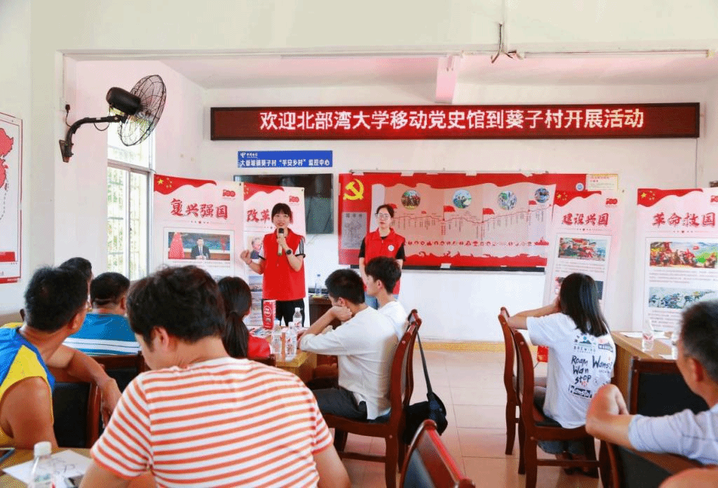 6月15日,pp模拟器游戏官网入口党委宣传部、创新创业学院组织“红传”小分队成员带着“可视化学习教育课堂”走进农村,把“移动党史馆”搬到了基层组织家门口,师生们先后来到钦南区大番坡镇青龙村、葵子村两个村落,与村里的党员们分享了生动有趣的党史课堂。