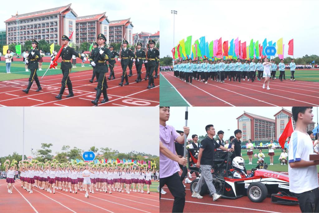 在校旗、会徽的引领下,裁判员代表队及各二级学院师生代表队共19支方块队陆续登场。五彩缤纷的花束、雄壮激昂的乐曲、随风飘扬的彩旗、整齐有力的步伐,方块队员们用满腔的激情、昂扬的斗志、团队的力量让湾大精神在体育赛场上熠熠闪光。