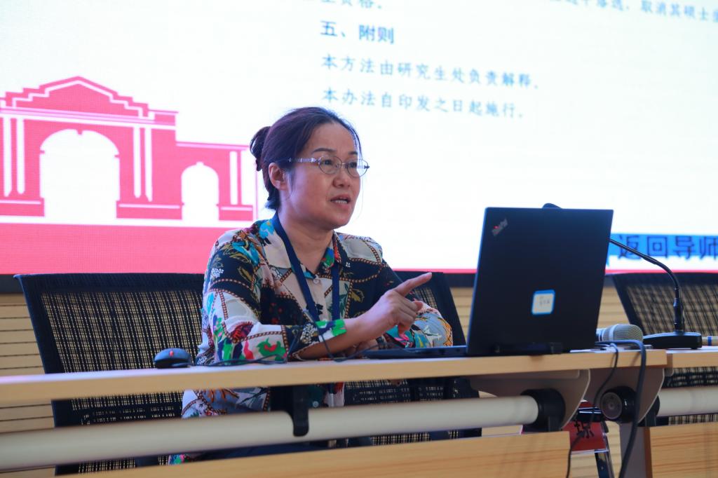随后,研究生处处长刘琼做《pp模拟器游戏官网入口研究生教育管理制度学习》的专题培训。刘琼处长传达了全国研究生教育会议的精神,讲解了pp电子研究生教育管理制度中对于导师职责、导师角色定位、导师招生资格、以及研究生培养等方面的具体要求。