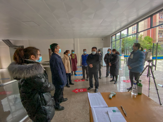 2月22日下午,自治区教育厅二级巡视员汪维率队到校检查春季开学疫情防控及校园安全工作,pp电子党委常委、总会计师梁智陪同检查。